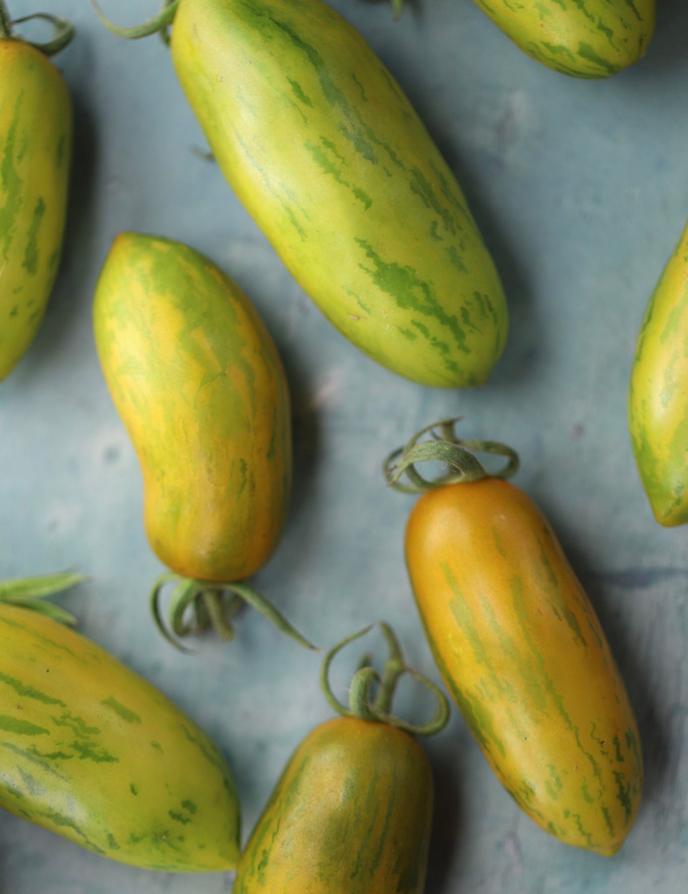 Det finnes både sorter som får et gultskjær når de er modne, og sorter som beholder grønnfargen. Det kan være vanskelig å avgjøre når de er modne. Gir de litt etter når du trykker på dem, er det en god indikator.