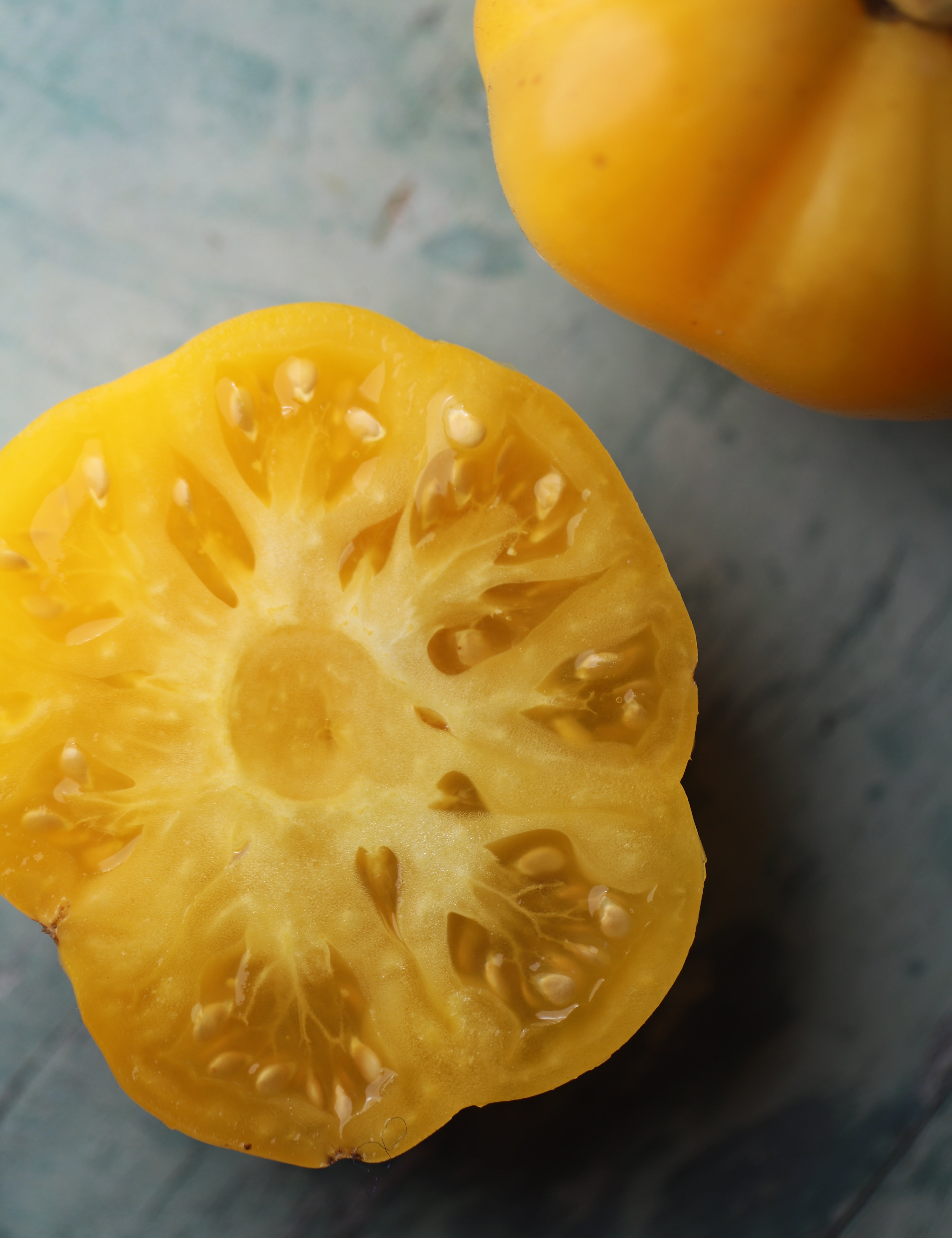 Mye tyder på at de første tomatene som ble dyrket i Europa var gule eller gylne. Det italienske navnet på tomat, pomodoro, betyr gulleple. Gule og oransje tomater er ofte søtere og mildere i smak enn andre farger, med hint av tropisk frukt. De varierer i farge fra lys sitrongul, gyllengul til oransje.