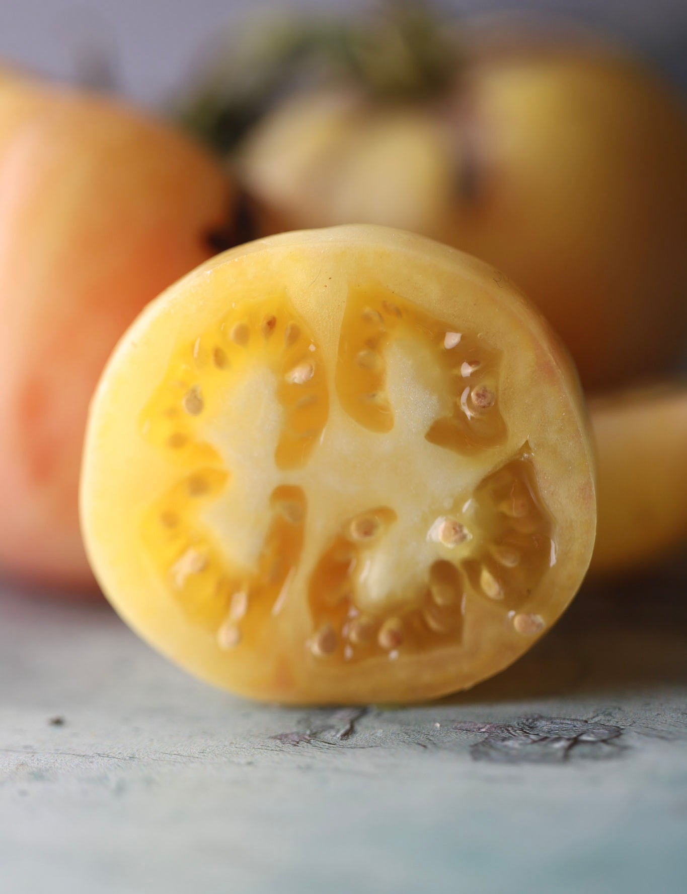 Hvite tomater er ekstra søte og milde i smaken og ganske sjeldne! De har gult eller nesten gjennomsiktig skinn, noe som gjør det litt vanskelig å avgjøre når de er modne utfra fargen. Gir tomatene litt etter når du trykker, er det en god indikator på at de er modne.