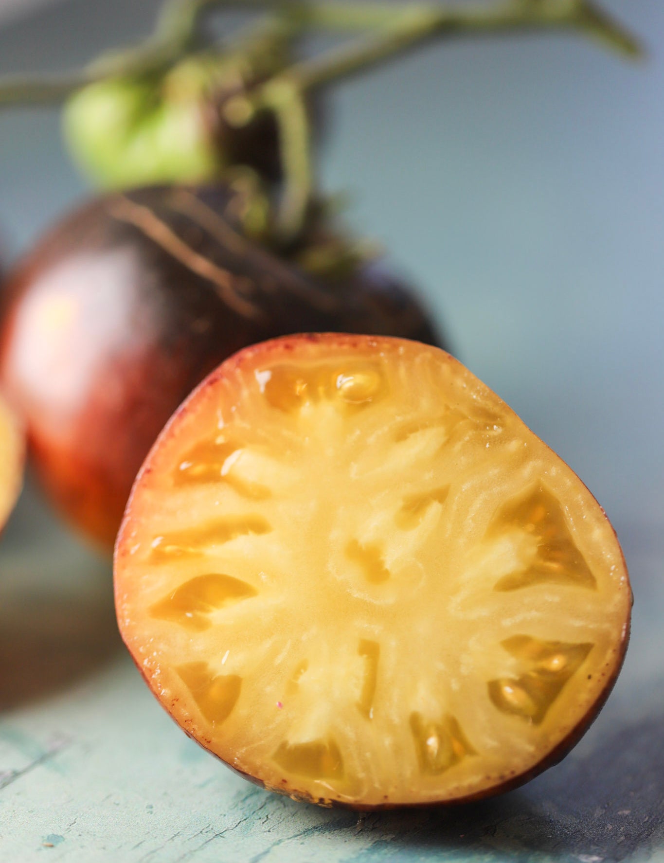 Svarte og indigofargede tomater er en relativt ny oppfinnelse, e første sortene så dagens lys på 1990-tallet. Siden den gang har de blitt mange og veldig populære. Ikke bare er de utrolig vakre, de har også en unik smak. Noen sorter har hint av salt og røykaroma. Det er den kraftige antioksidanten antocyanin som gir tomatene sin farge, samme fargestoff som man finner i blåbær. Jo mer lys tomatene blir utsatt for, jo mørkere blir fargen.