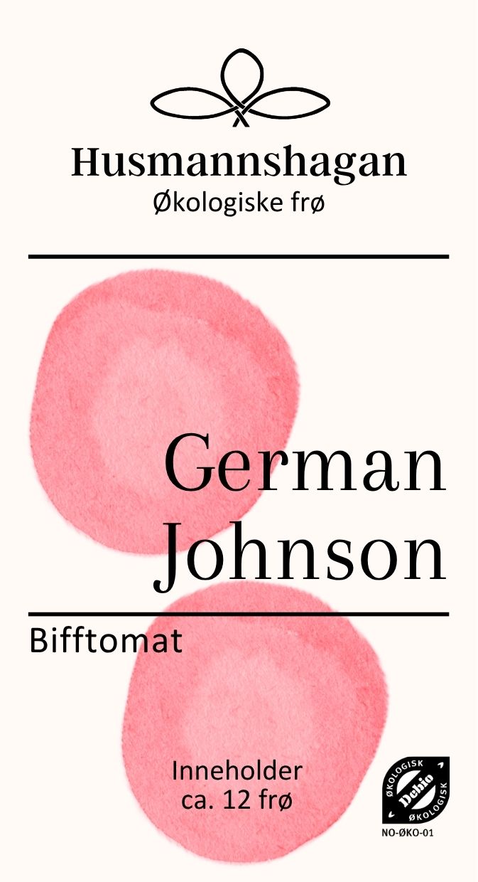 German Johnson er en klassisk amerikansk kulturarvsort med opprinnelse fra Virginia og Nord-Carolina. Sorten regnes som en av opprinnelseslinjene til den kjente Radiator Charlie’s Mortgage Lifter og har lang tradisjon som en pålitelig og smakfull tomat i sørstatene.
