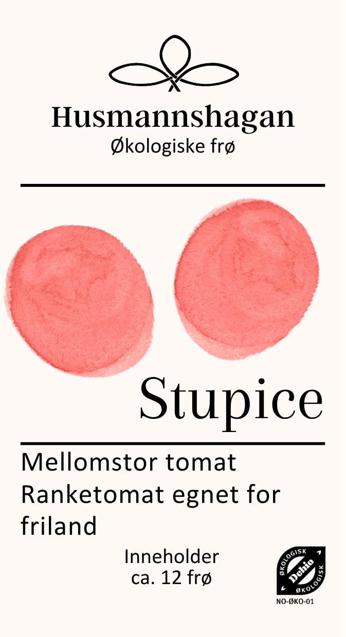 Stupice er en tsjekkoslovakisk sort kjent for sin fantastiske kombinasjon av ekstrem tidlighet, kuldetoleranse og stor avling. Sorten gir rikelig med mellomstore, røde tomater på 50–70 gram, med en søt, frisk og aromatisk smak som ofte fremheves som eksepsjonelt god for å være en så sort. Tomatene er runde, saftige og modner jevnt – en perfekt allround-tomat for kjølige områder og korte sesonger.