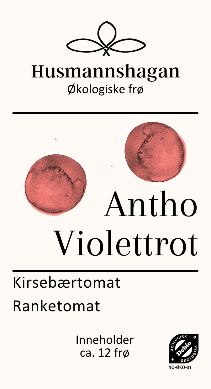 Antho Violettrot er en vakker og spennende kirsebærtomat fra den tyske foredleren Reinhard Kraft. Sorten er et resultat av krysningen Bianca × OSU P20 og tilhører den fargerike «Antho»-familien, kjent for sine intense nyanser og rike smaker.