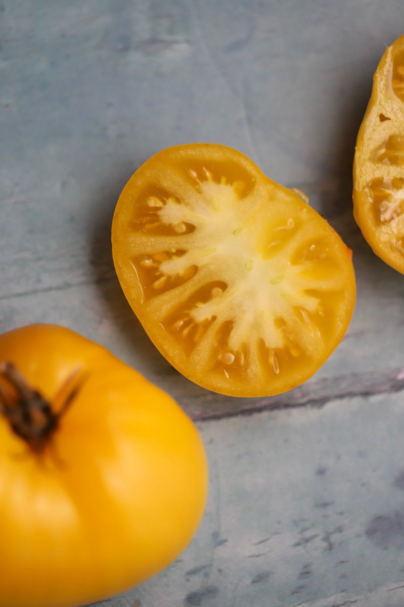 Fruktene er lyse sitrongule, hjerteformede og veier vanligvis mellom 30 og 100 gram. Fruktkjøttet er fast og saftig, med moderat frømengde. Smaken er mild og avrundet med lav syre og et hint av sødme – en allsidig tomat som passer like godt i salater som på brødskiva eller som dekorativ tilbehørstomat.