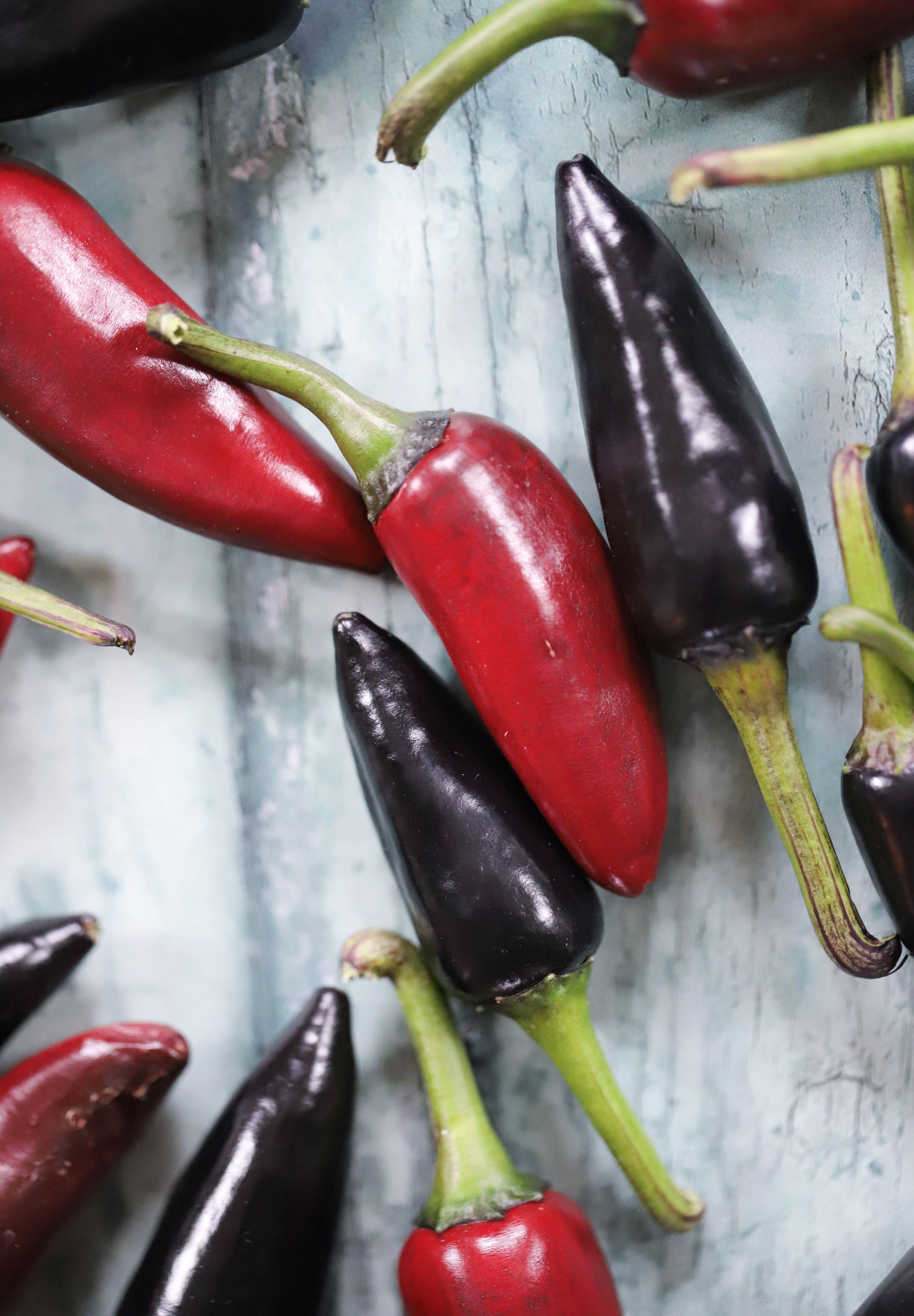 Black Jalapeno er en helt svart chili, med vakre, blanke frukter, som ikke er så sterke som vanlige jalapeno. Plantene blir bare rundt 40 cm høye, og kan også dyrkes i krukker. Chiliene får et mørkerødt skjær når de er modne, og blir ca. 6 cm lange og koniske.