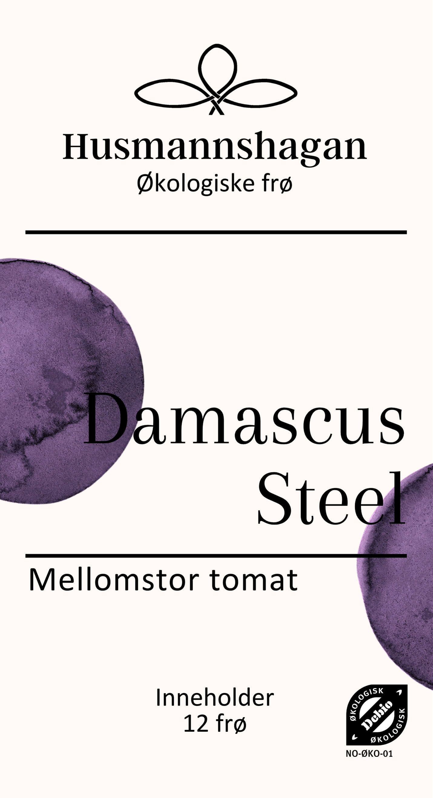 Damascus Steel er en indigostripet, mellomstor tomat. De er utrolig vakre og er søte og lett syrlige i smaken.