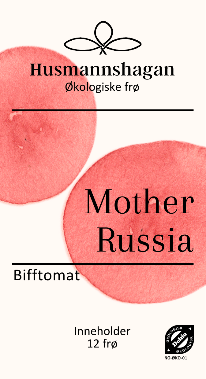 Mother Russia er en stor, hjerteformet rød bifftomat opprinnelig fra Sibir i Russland. Smaken her helt fantastisk, den smaker av søt vannmelon. Sorten gir stor avling til tross for at den er en lav sort.